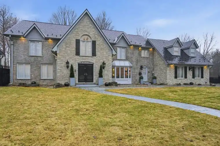 Situated on a serene, tree-lined street, this remarkable five-bedroom home offers breathtaking views and exceptional privacy, backing directly onto the prestigious Hamilton Golf and Country Club. Surrounded by mature landscaping, the property blends timeless elegance with modern comfort. The main level features expansive principal rooms, including a dramatic family room with vaulted ceilings, skylights, custom millwork, and a striking fireplace. A gourmet kitchen with premium finishes flows seamlessly into a sun-filled solarium overlooking the professionally landscaped backyard, complete with a pool and outdoor entertaining spaces. Upstairs, the primary suite serves as a private retreat with a fireplace, walk-in closet, and spa-inspired six-piece ensuite. Additional bedrooms are generously sized, ideal for family and guests. The fully finished walk-out basement offers versatile space for recreation, entertaining, or multi-generational living, including additional living areas and a private retreat. Additional features include 200 amp electrical service and an EV charging plug in the garage, combining modern convenience with refined living. This exceptional home presents a rare opportunity to enjoy elegant design, comfort, and lifestyle in a coveted golf course setting.