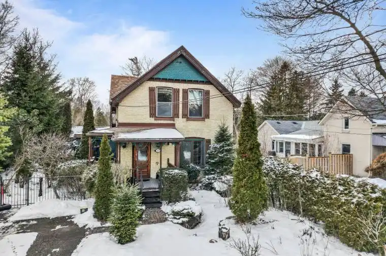 Step into the elegance of a true 1896 Victorian gem, nestled on a beautifully landscaped 198-foot lot in a quiet, established neighbourhood. This double-brick, solidly built home features original craftsmanship throughout from custom wood finishes and one-piece joists and rafters to a variety of exquisite stained glass windows (15 in total!). Inside, discover a harmonious blend of heritage and functionality: Main Floor: Formal parlour/office, powder room, spacious living room with a wood-burning fireplace, and a sunroom with a gas fireplace and hot tub. The dining room boasts oak finishes and a striking tin ceiling, while the kitchen offers rustic charm with pine cabinetry and durable linoleum/laminate flooring. Upstairs: 4 bedrooms and a convenient half bath, filled with natural light and antique character. Basement: Fully finished with a rec room, laundry area, and full bath perfect for extra living or entertainment space. In-law Suite potential, with a separate entrance. Outside, unwind on the patio overlooking a 30-foot swimming pool, surrounded by several serene ponds and professional landscaping. A bonus guest house with its own gas fireplace and electric baseboard heating offers rental or another In-law Suite. Additional highlights include: 198-foot lot with mature trees and tranquil outdoor spaces Original hardwood floors Updated electrical (200 amps) and owned water heater (23 years old) Roof replacements in 2024 (over sauna and dining room); rest of the roof replaced in 2017 New patio doors and skylights installed in 2024 Solid concrete and block foundation Furnace approx. 15 years old Located just steps from parks, top-rated schools, shopping, transit, nature trails, and bike paths this one-of-a-kind Victorian home is a rare opportunity to own a piece of history, thoughtfully updated for todays lifestyle.